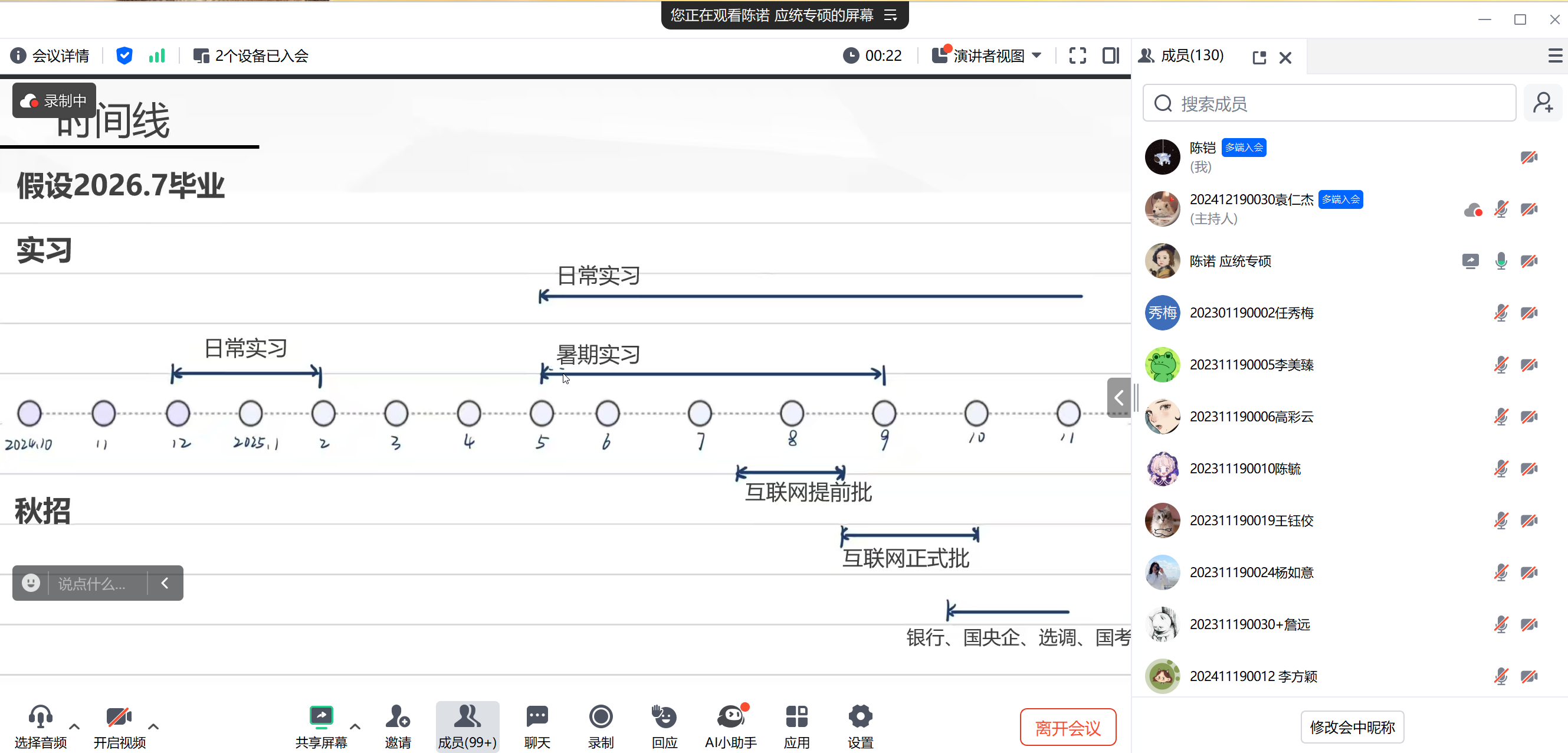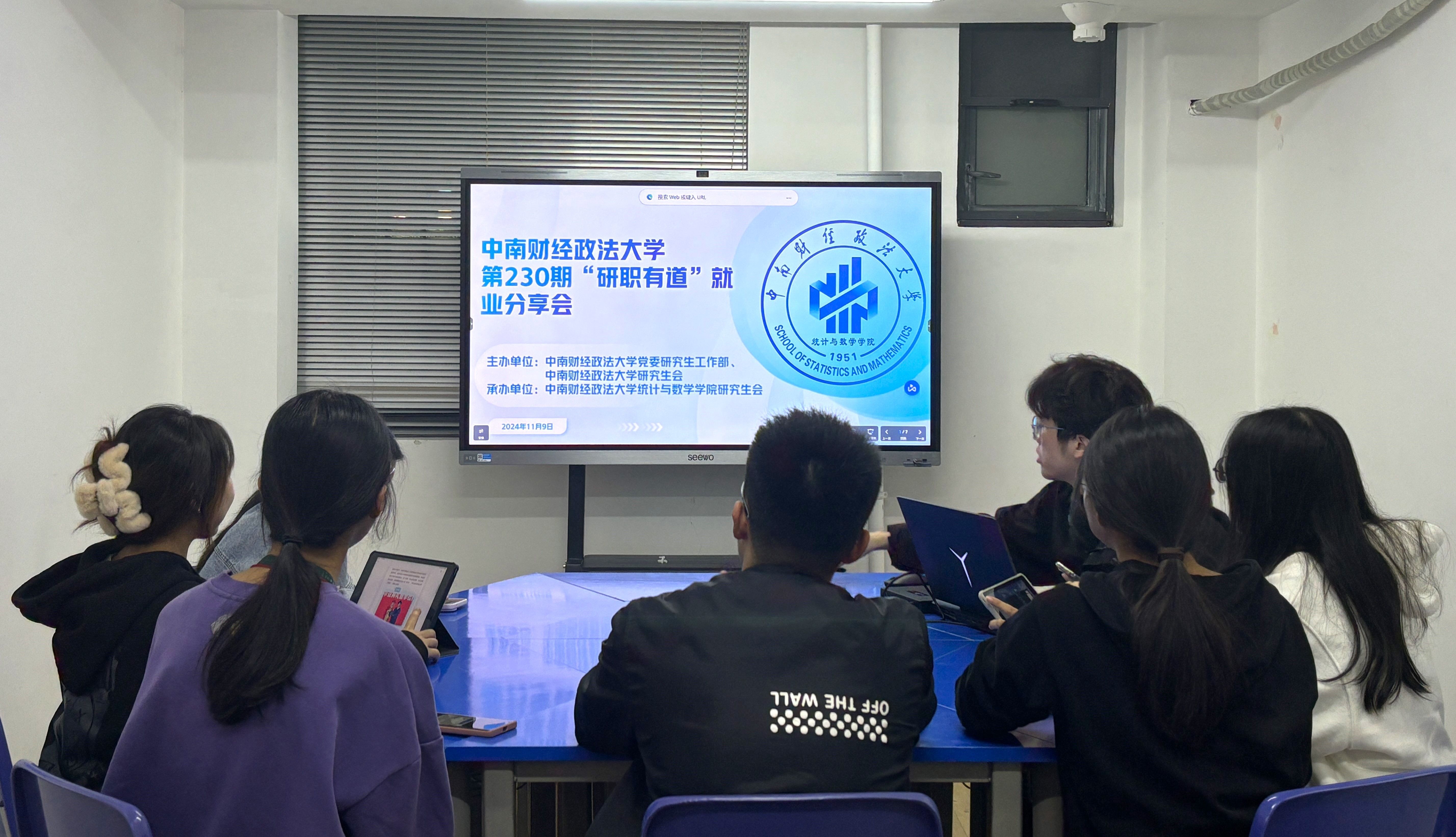 (通讯员:吴志伟 成梦瑶)为帮助在校研究生深入了解就业市场动态、提升求职技巧,促进其职业发展和个人成长,统计与数学学院研究生会于11月9日晚七点举办第230期“研职有道”研究生求职就业经验分享会。本次分享会采取线上线下相结合的方式进行,线下会场设在“一站式”南湖学生社区望湖驿站,线上通过腾讯会议平台进行直播,吸引了广大同学参与。活动由统计与数学学院生活权益部干部袁仁杰主持。