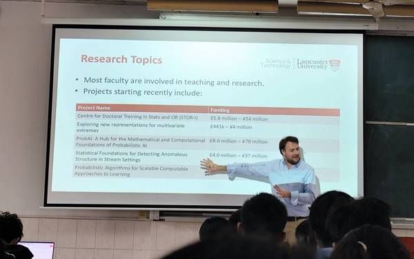 此外,Gibberd博士还着重介绍我校与兰卡斯特大学携手推出的统计学专业“3+1”本硕连读项目。关于此项目,Gibberd博士指出该项目旨在为学生提供更加多元、全面的教育体验。通过这一项目,学生不仅能够充分汲取两所知名学府的优质教育资源,还能为未来的职业生涯铺设坚实的基石。随后,他详细讲解了就业方向和申请方式两个板块,落脚于大家的关注重点,解答了大家切实关心的问题。