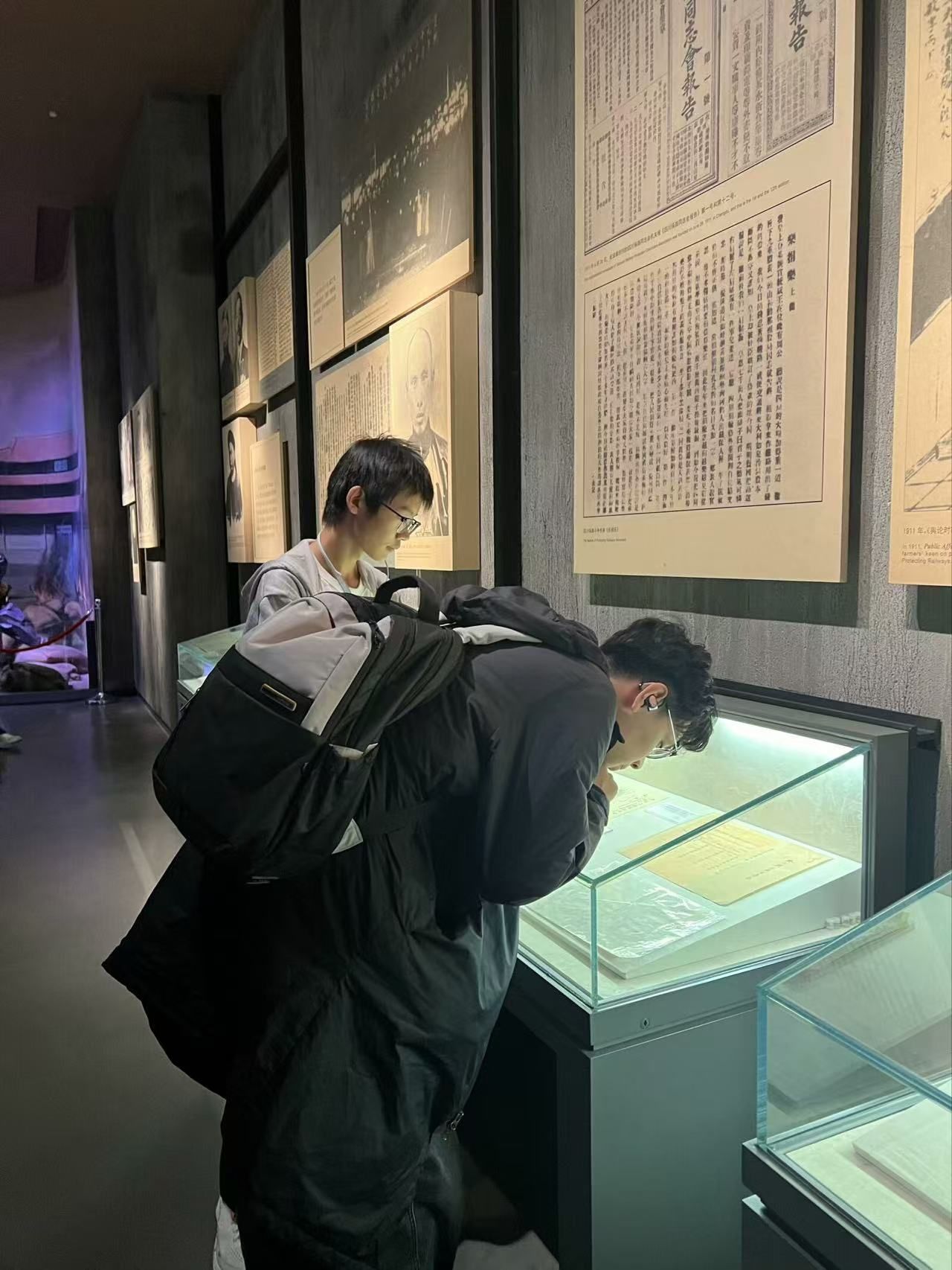 活动进行到第二部分,团支书李奕洋提前准备了八个与辛亥革命相关的问题,如“根据清末中国的实际情况,你发现哪些状况导致必须革命?”,同学们以团小组的形式,带着问题去参观五个展厅。同学们对这段历史的复杂性和艰巨性有了更清晰的认识,加深了对辛亥革命的理解。
