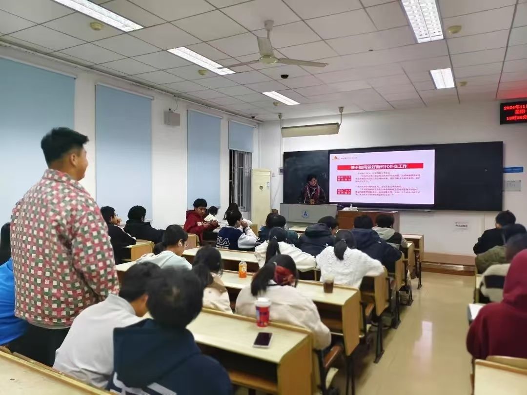 (通讯员:王佳琪)在风云变幻的全球格局中,中国特色大国外交政策如同一座照亮世界和平与发展道路的灯塔。为了深化青年学生对这一外交政策的认识,统计2403团支部于11月举办一场主题为“深入推进中国特色大国外交——中拉友谊知多少”的团日活动。此次活动旨在通过学习交流,帮助同学们深刻领会中国特色大国外交的内涵,以及中拉友谊在新时代外交工作中的重要性。