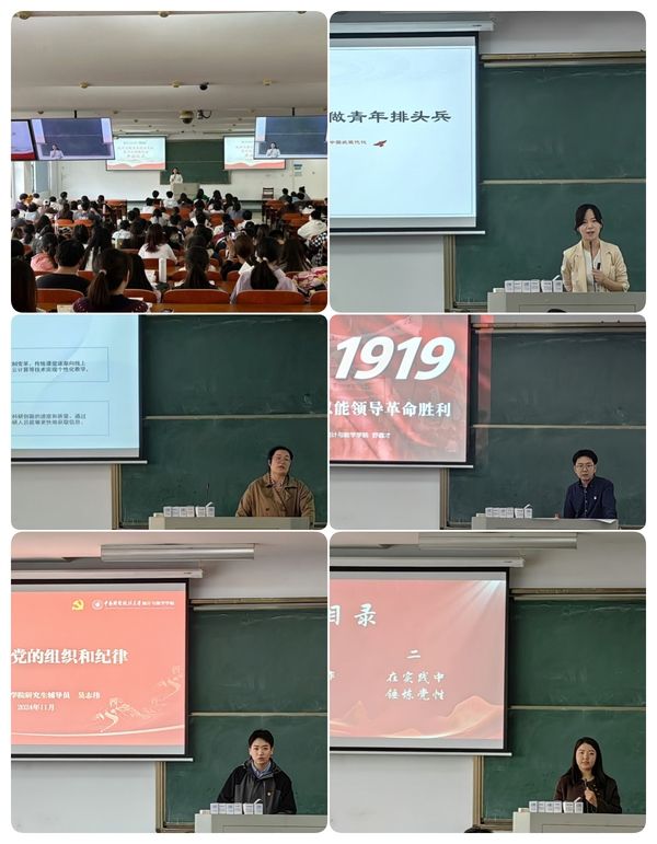 党课第三讲,舒鑫才以“中国共产党何以能领导革命”为主题,以唯物史观的视角论证中国共产党领导革命成功的必然性。他详谈了从1919年五四运动到中国共产党领导革命胜利的历史,强调五四运动作为新民主主义革命的起点、作为一场政治运动和文化革新,对人民革命的深远影响。党课还探讨了中国共产党在不同历史时期的理论和实践,结合具体的历史事件和人物,阐述了中国共产党如何通过土地改革发动群众、建立广泛的统一战线最终取得革命胜利,分析了马克思主义指导下的群众路线和革命胜利的必然性。他强调希望学员们继承五四精神,夯实理论基础,坚定理想信念,勇于担当作为,为实现中华民族伟大复兴贡献青年力量。