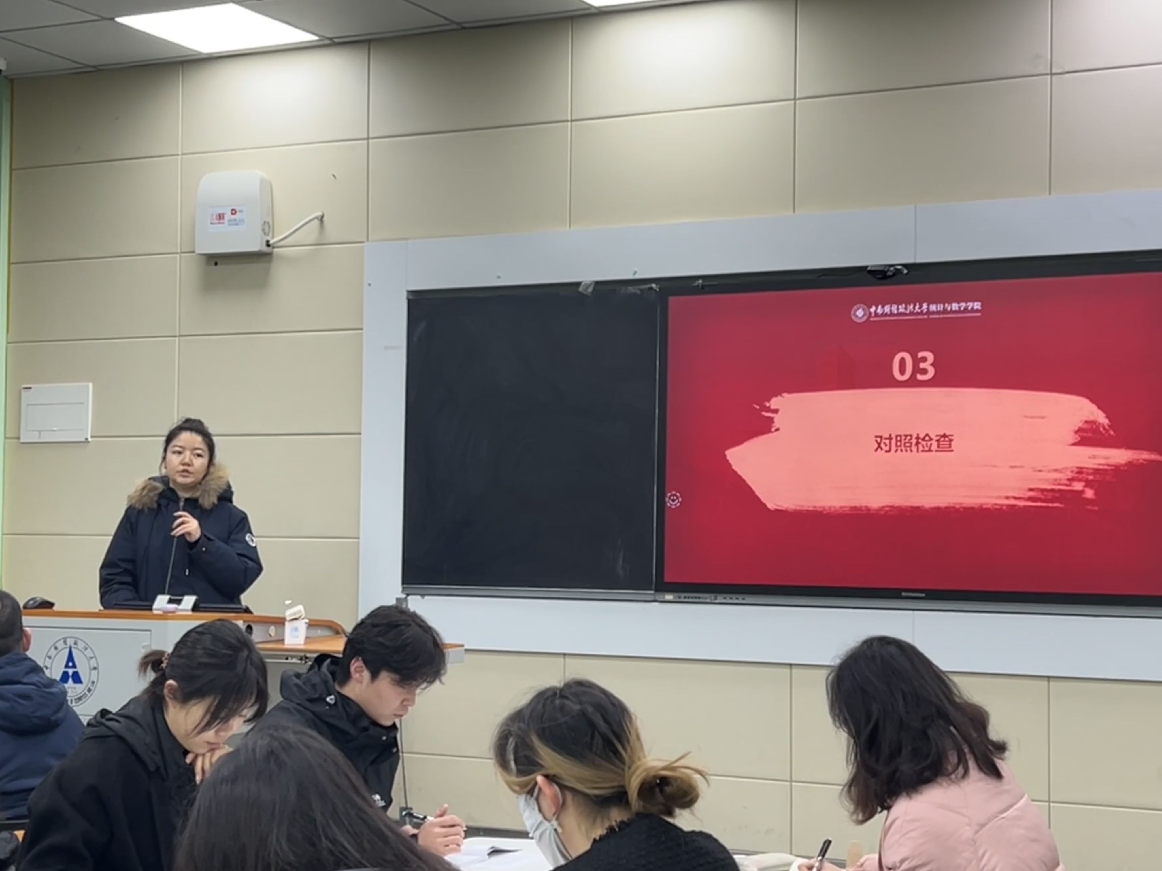 最后,统计与数学学院党委委员王瑄同志对本次组织生活会进行深刻总结。她表示,2022级本科生党支部建设卓有成效,应当秉持“传帮带”的思路联学联建,吸纳低年级学生党员学习参考,将经验方法传承下去。同时,她对各位同志提出殷切期望,希望各位党员加强独立思考与判断的能力,约束自身言行,发挥模范带头作用,做好学业规划。