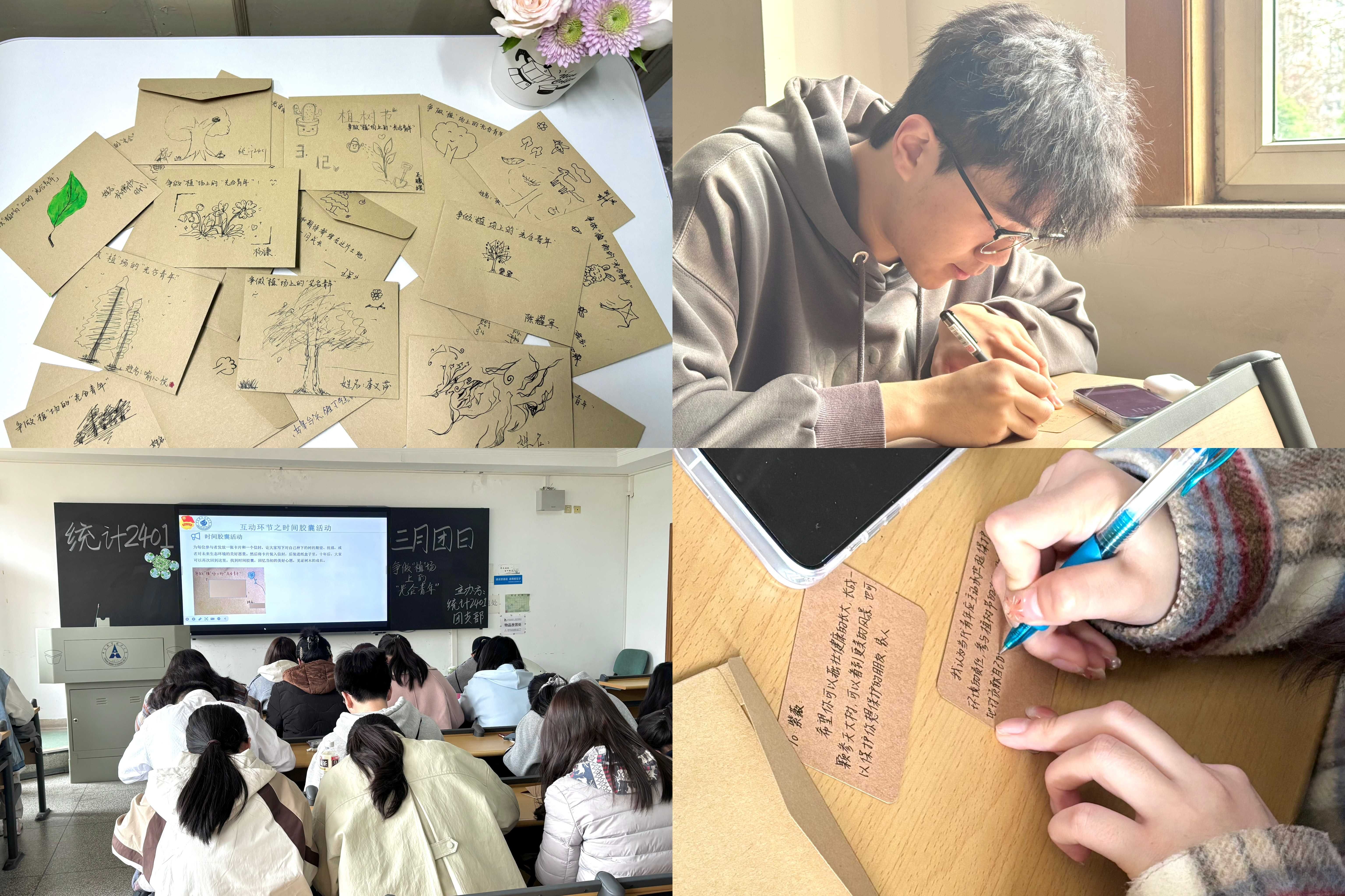 在理论学习的最后,团支书强调青年在生态保护中的重要使命。共青团中央高度重视生态文明建设,通过政策引导,鼓励广大青年积极参与植树造林、环保宣传等活动,培养青年的生态责任意识。为检验学习效果,现场设置知识抢答环节,同学们踊跃参与,气氛热烈。在“时间胶囊”互动环节中,同学们写下对团支部种下小树的期望与祝福,封存美好心愿。