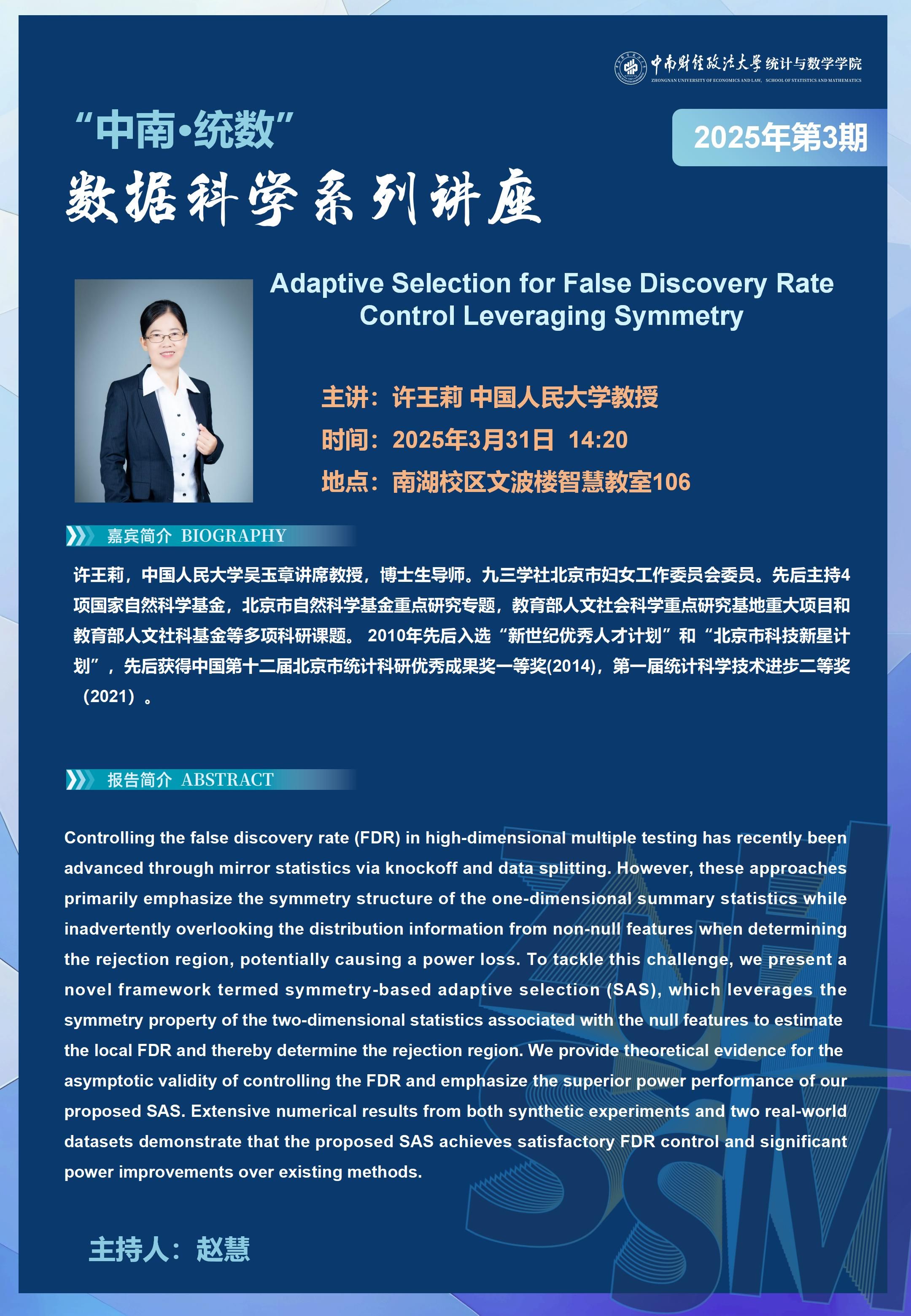 “中南·统数”数据科学系列讲座 (2025年第3期)