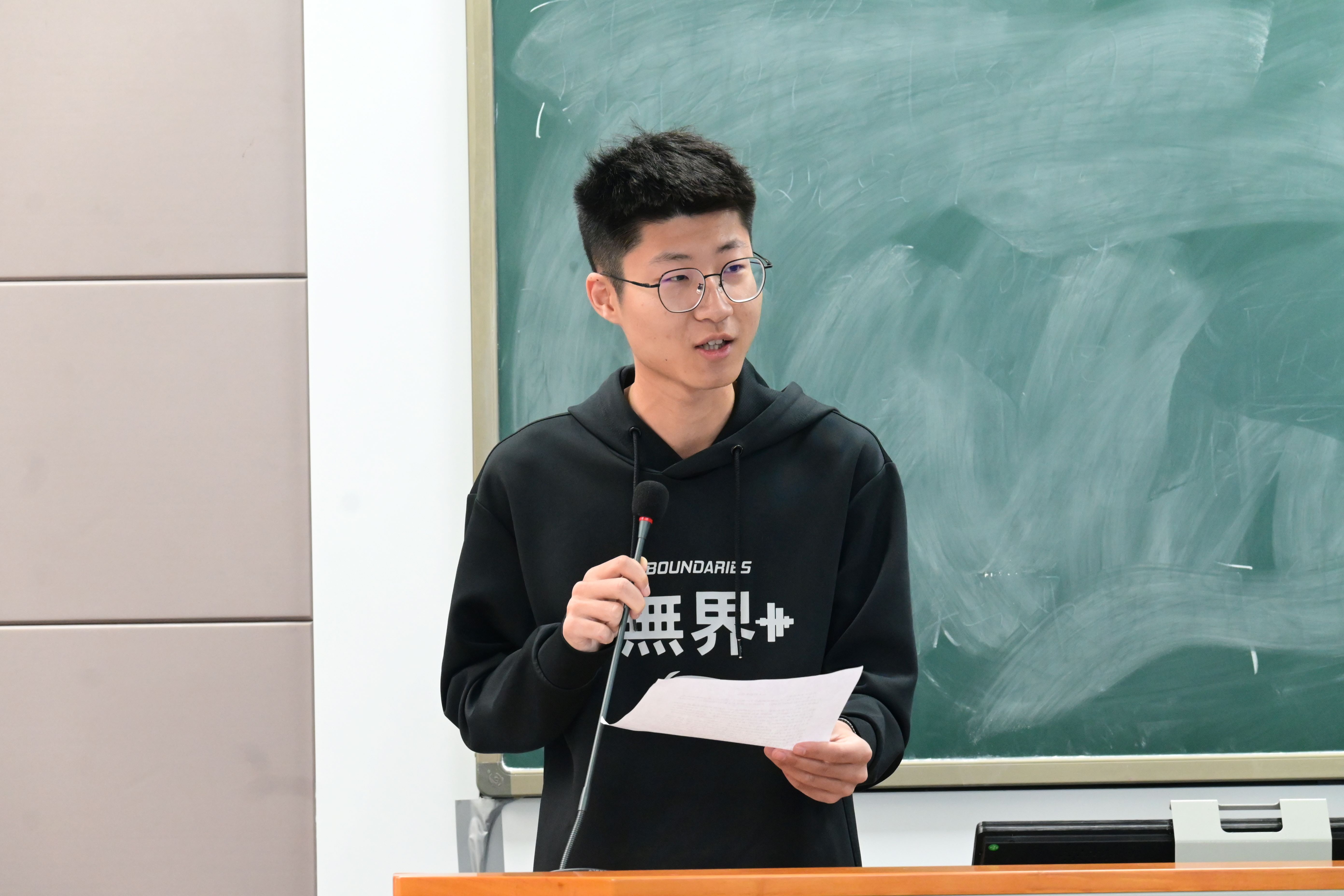 随后,余俊锋以“践行两会精神,青年把脉未来”为主题进行了团日活动分享。他深入解读了习近平总书记在全国两会上关于科技和产业创新、科技人才培养等方面的重要讲话精神,强调了科技创新在中国式现代化进程中的关键作用,以及青年一代在科技强国建设中的使命担当。余俊锋的分享引起了在场同学们的强烈共鸣,激发了大家积极投身科技创新的热情。