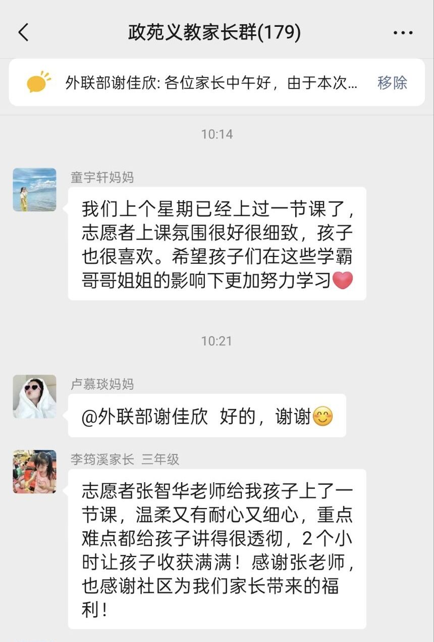 活动以数学辅导为核心,同步辐射其他学科领域,通过“知识巩固+思维扩展”模式,帮助社区学生在夯实学科基础的同时拓展知识层面,提升学生综合能力。以数学辅导为例,针对初中几何思维薄弱等问题,志愿者在设计专题训练和阶梯式训练辅导的同时,融入生活实践案例,拓宽学生应用场景,帮助学生重拾数学信心。为了确保教学质量,志愿者定期反馈学习进度,动态调整教学策略。政苑小区曾参与过“线上义教”的家长反映,活动不仅解决了课后辅导难题,还通过系统化教学提升了学生学习兴趣。