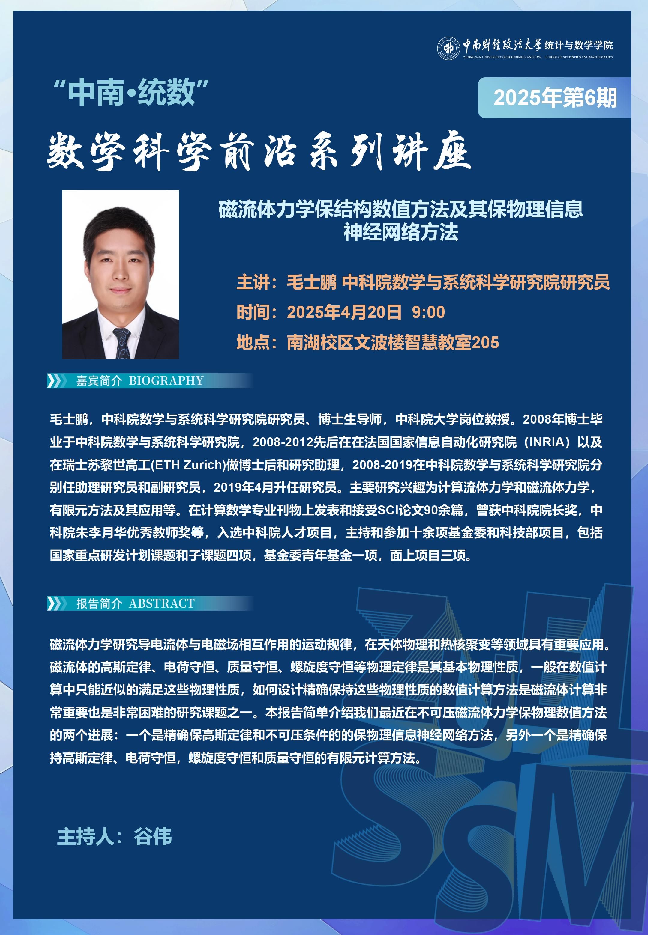 “中南·统数”数学科学前沿系列讲座 (2025年第6期)