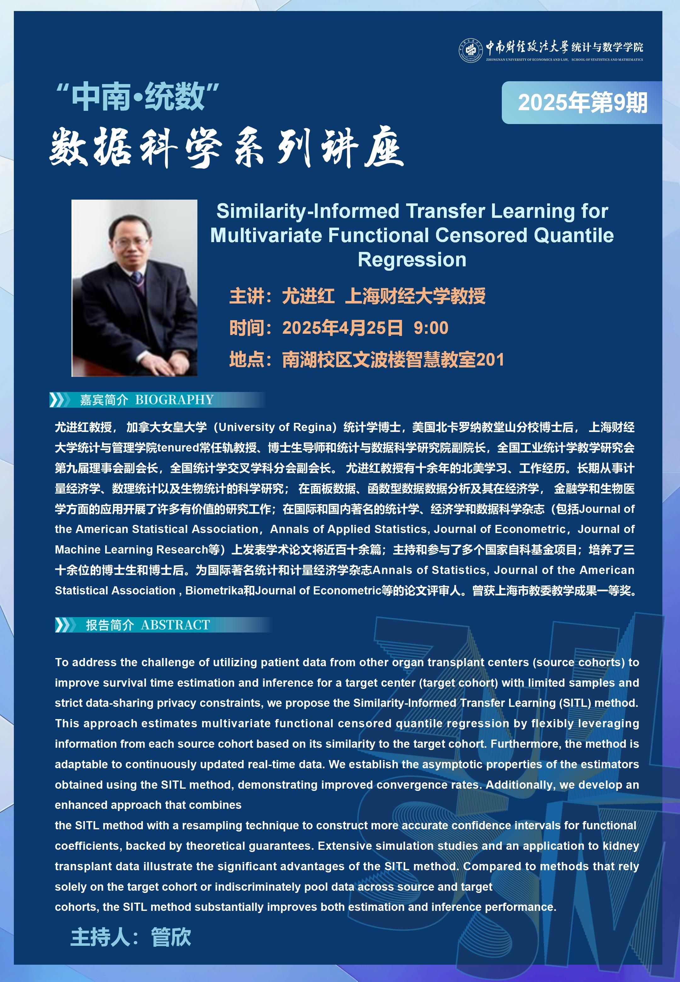 “中南·统数”数据科学系列讲座 (2025年第9期)