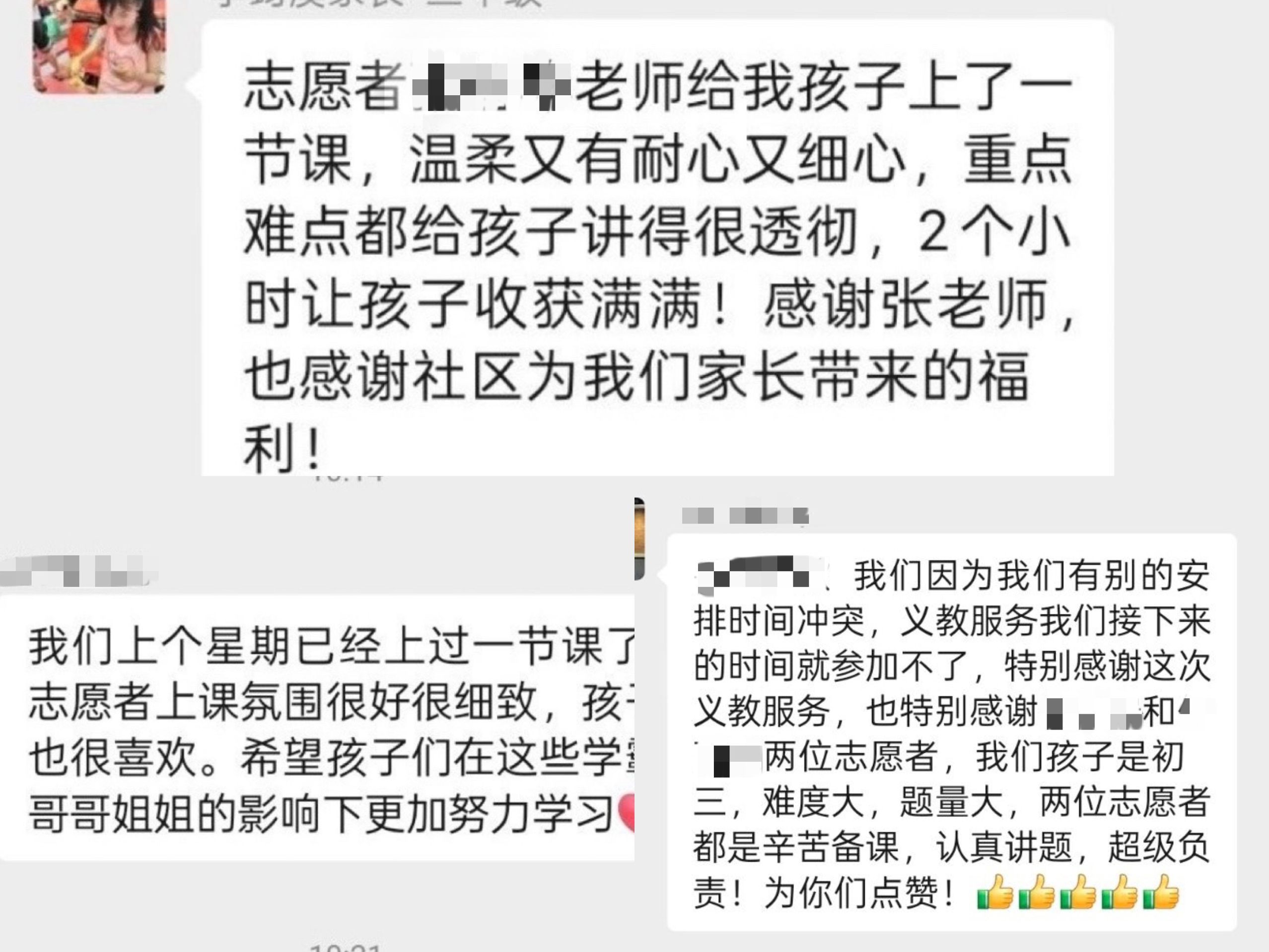 志愿者们的教学成果也得到了家长们的一致好评。在报名参加活动的家长群里,家长们的感谢短信纷至沓来,每一条短信都承载着沉甸甸的谢意。这些感谢短信成为了志愿者们认真备课、仔细讲解的动力。