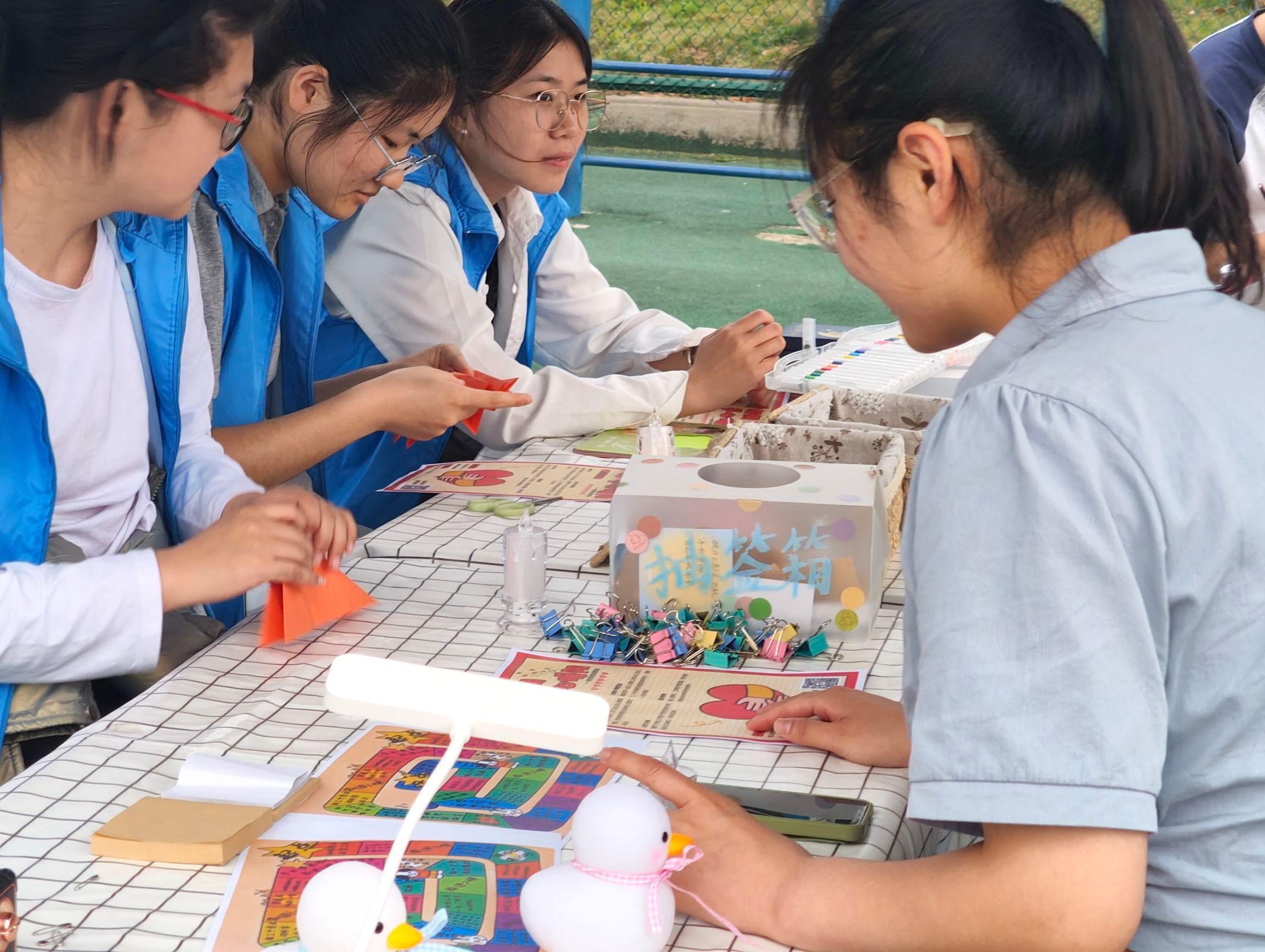 在“爱的抱抱”环节中,志愿者们身着可爱的玩偶装,热情地张开双臂,为过往同学送上温暖的拥抱,传递着鼓励与支持。“心情折纸”板块为同学们搭建起表达内心情绪的创意平台:同学们将自己的心情书写于彩纸之上,折成纸鹤、星星等形状,这些折纸也成为了同学们心灵的寄托。“便签心情树”前同学们纷纷拿起便签,认真写下自己的心愿、祝福或是当下心情,并将其悬挂于树上。“心理飞行棋”中骰子落定,同学们投入对应心理小游戏,摊位充满了欢声笑语,大家在轻松氛围中放松着心情。