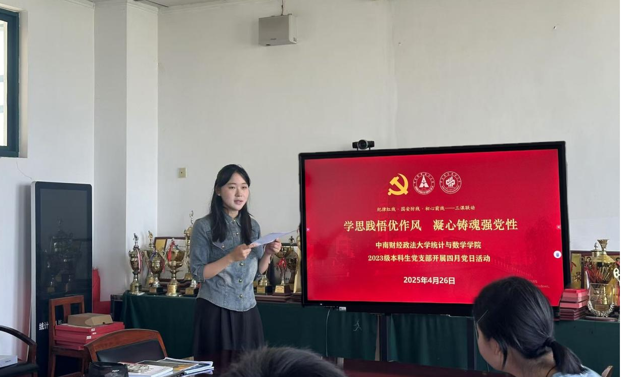 (通讯员:丰宇瑞 蔡烨彤)为扎实开展深入贯彻中央八项规定精神学习教育,进一步贯彻落实总体国家安全观,统计与数学学院2023级本科生党支部于4月26日上午在文波401会议室开展“学思践悟优作风 凝心铸魂强党性”主题党日活动。活动以“纪律红线・国安防线・初心前线——三课联动”为核心,融合理论学习、情景体验与实践部署,创新引入红色剧本杀,打造沉浸式党性锤炼课堂。党支部书记丰宇瑞及全体预备党员参与学习,活动由党支部副书记杨奕睿主持。
