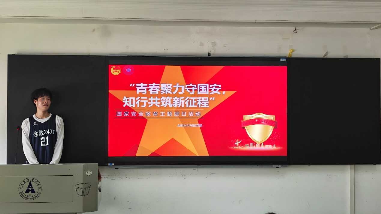 (通讯员:周官凝、吴哲垲)随着第10个全民国家安全教育日的到来,金数2401团支部迎来四月主题团日活动。为帮助同学们进一步深化国家安全的理解,增强国家安全意识,金数2401团支部于4月20日,在文津楼304教室顺利举办本次主题团日活动。本次活动由邹昀达同学担任主持人。