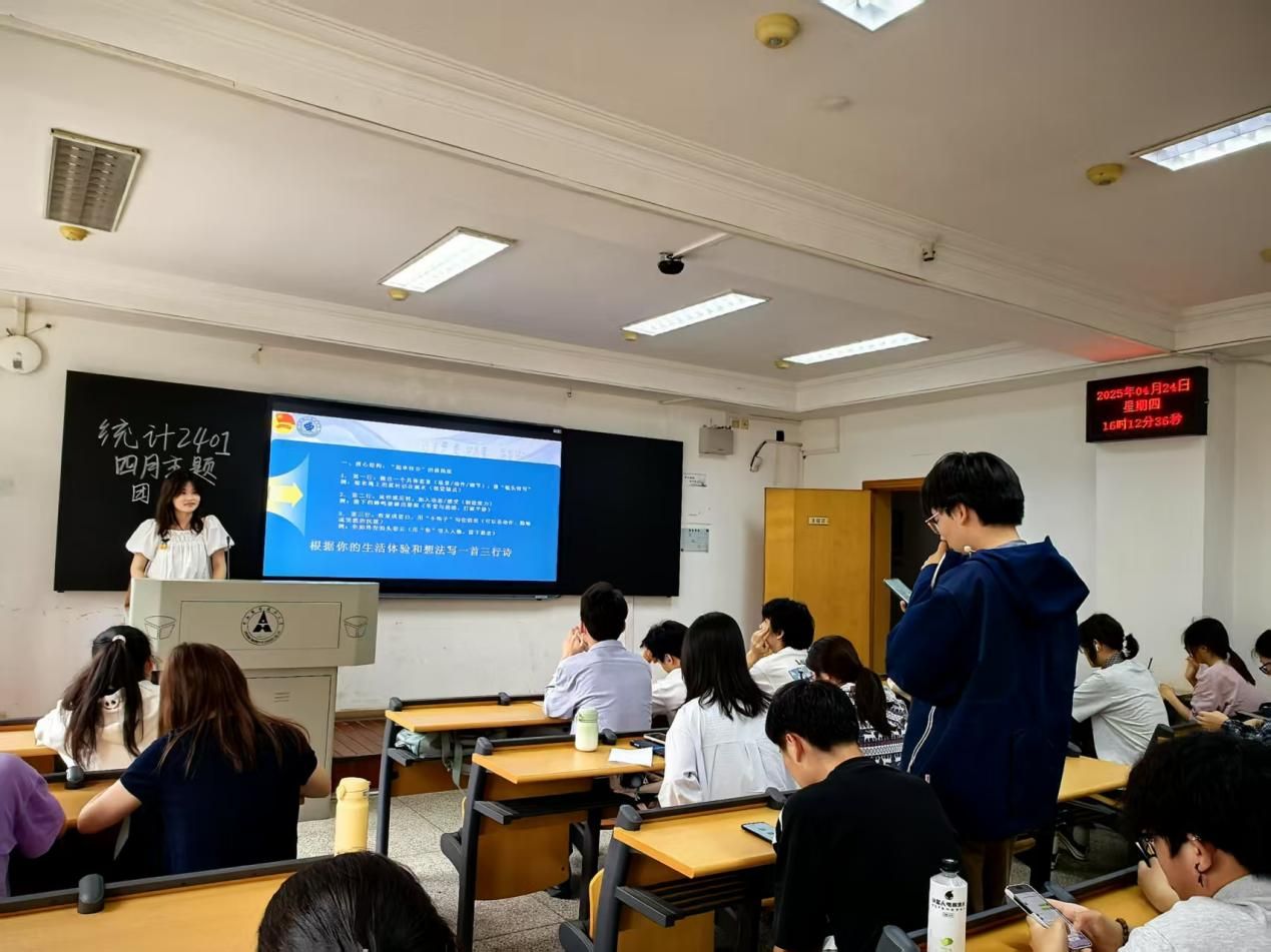 (通讯员:黄祺芩)4月24日,正值第28个“世界读书日”余韵之际,统计2401团支部联合学院青年马克思主义者培养工程培训班,于文津302教室开展“共浴书香,阅览未来”主题团日活动。此次活动深度融合理论宣讲与阅读分享,充分发挥院青马班成员的示范引领作用,带领同学们感悟书香魅力、厚植阅读习惯。
