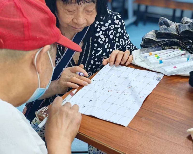 活动当日,虽然天气状况欠佳,但老人们参与活动的兴致依旧浓厚,志愿者们全心投入服务的热忱也丝毫未消。通过志愿者的引导与帮助,老人们完成了精美的编织画。五子棋新玩法是智力与运气的比拼,让老人们在博弈中体验到了别样的乐趣。精准盖杯则考验着老人们的精准度和手眼协调能力,现场不时传来阵阵喝彩声和欢笑声。