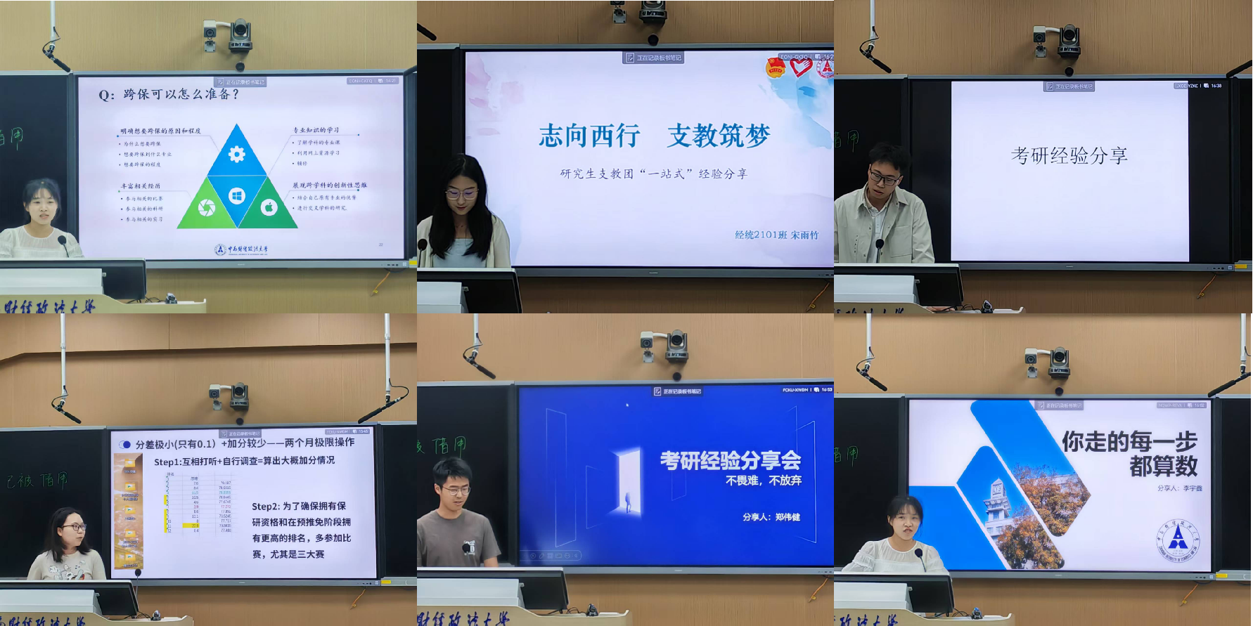 两场分享会内容充实、针对性强,为同学们提供了全方位的升学与就业指导。在升学专场,五位优秀毕业生代表通过经验分享,帮助同学们厘清了保研、考研的关键环节;在就业考公专场,三位嘉宾结合行业现状和个人经历,为同学们提供了切实可行的求职建议。