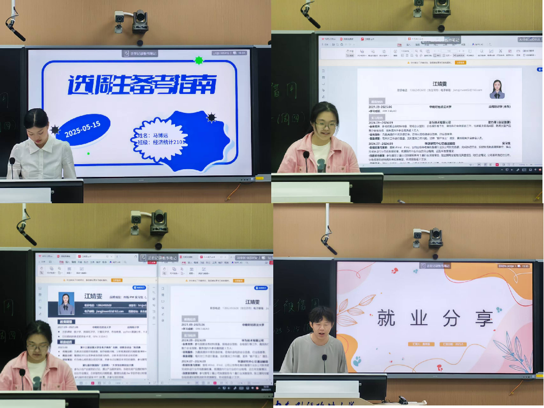 (通讯员:潘璨)为深入贯彻党的二十届三中全会精神,加速构建招培就一体化联动机制,我院紧跟国家教育改革与发展步伐,在招生、培养及就业环节强化精准与协同育人效能,着力提升学生综合素质和人才培养的社会适配性。统计与数学学院2022级团总支于2025年5月14日和15日分别举办了考研保研专场和就业考公专场两场分享会。