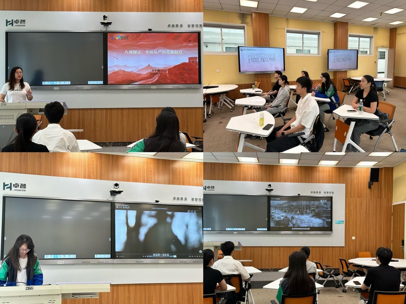 活动尾声,全体党员围绕“八项规定是改进作风切入口和动员令”进行专题研讨,系统检视支部和党员个人在作风领域的突出问题,以刀刃向内的决心推动全面从严治党向纵深发展。最后,党支部书记丰宇瑞作总结点评。她指出,此次党日活动实现了“专题领学—对标研学—实地践学”的有机联动,在今后的学习生活中,党员同志们也应注重“理论+实践”,严格遵守党的纪律,将党的先进理论落实至生活的点点滴滴,为党和人民的事业不懈奋斗。