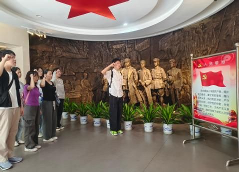红色教育基地实践环节,全体预备党员在金泊宁同志领誓下,面向党旗庄严宣誓,铮铮誓言尽显责任担当。随后,大家参观江夏革命纪念馆。馆内陈列的文物、图片与文字资料,全方位、多角度地展现了江夏革命历史,同志们驻足凝视,深刻感受革命先辈们在艰难困苦中不屈不挠、砥砺前行的奋斗历程。参观结束,全体预备党员向革命烈士敬献鲜花,表达敬重与缅怀,立志铭记历史,传承红色精神。