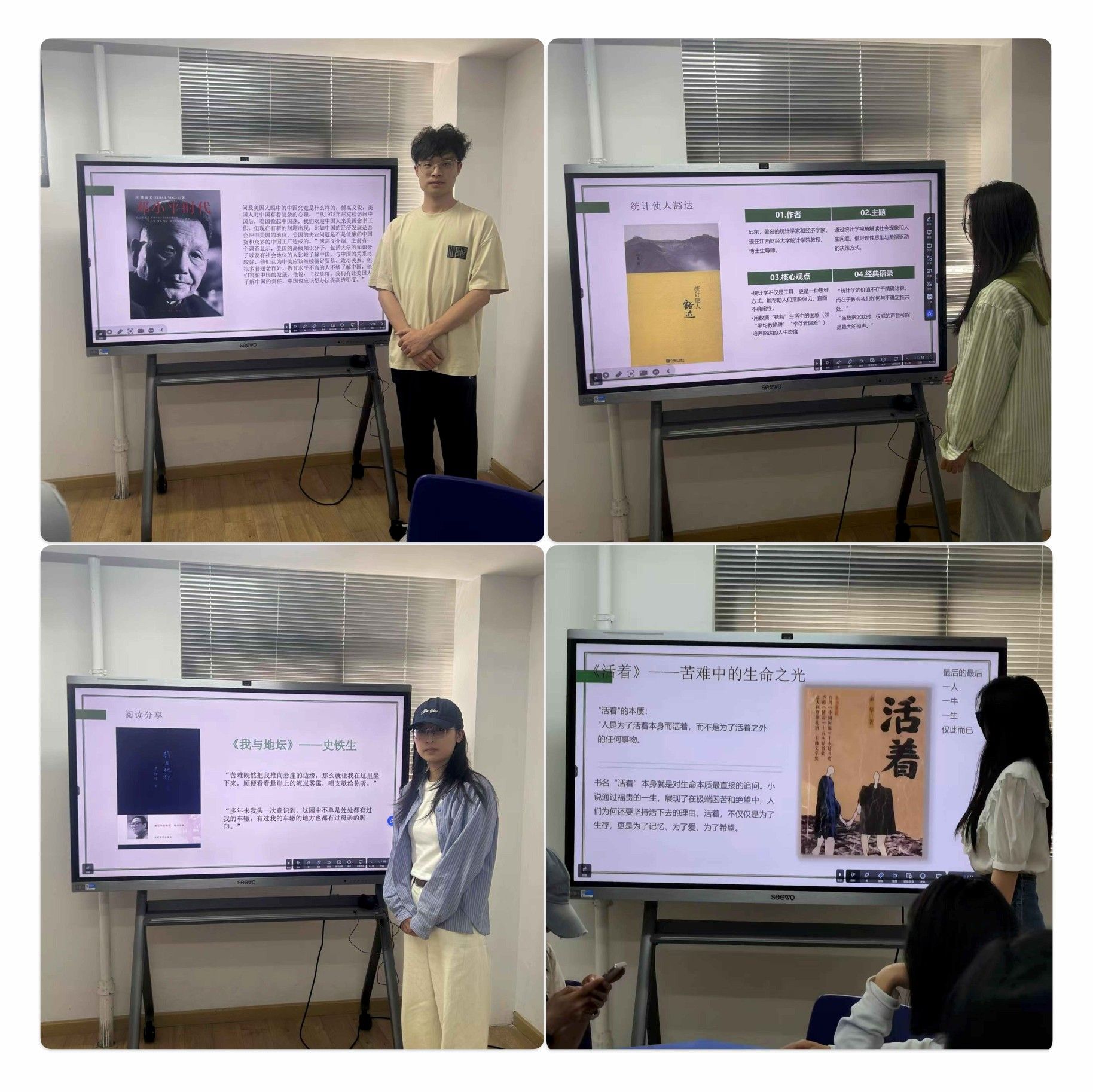 活动中,每位参与者精心准备了PPT,结合自身阅读感悟,从不同维度解读心仪书籍。分享内容涵盖广泛——有同学以《邓小平时代》为引,系统梳理中国改革开放的历史进程,带领大家探讨“中国式现代化道路”的深层逻辑;有同学另辟蹊径,通过《统计使人豁达》将统计学原理与人生哲理巧妙融合,展现专业知识与人文关怀的独特交织;更有同学聚焦《活着》《我与地坛》等文学经典,从生命韧性、人性光辉等角度切入,以细腻的情感与深刻的思考引发全场共鸣。