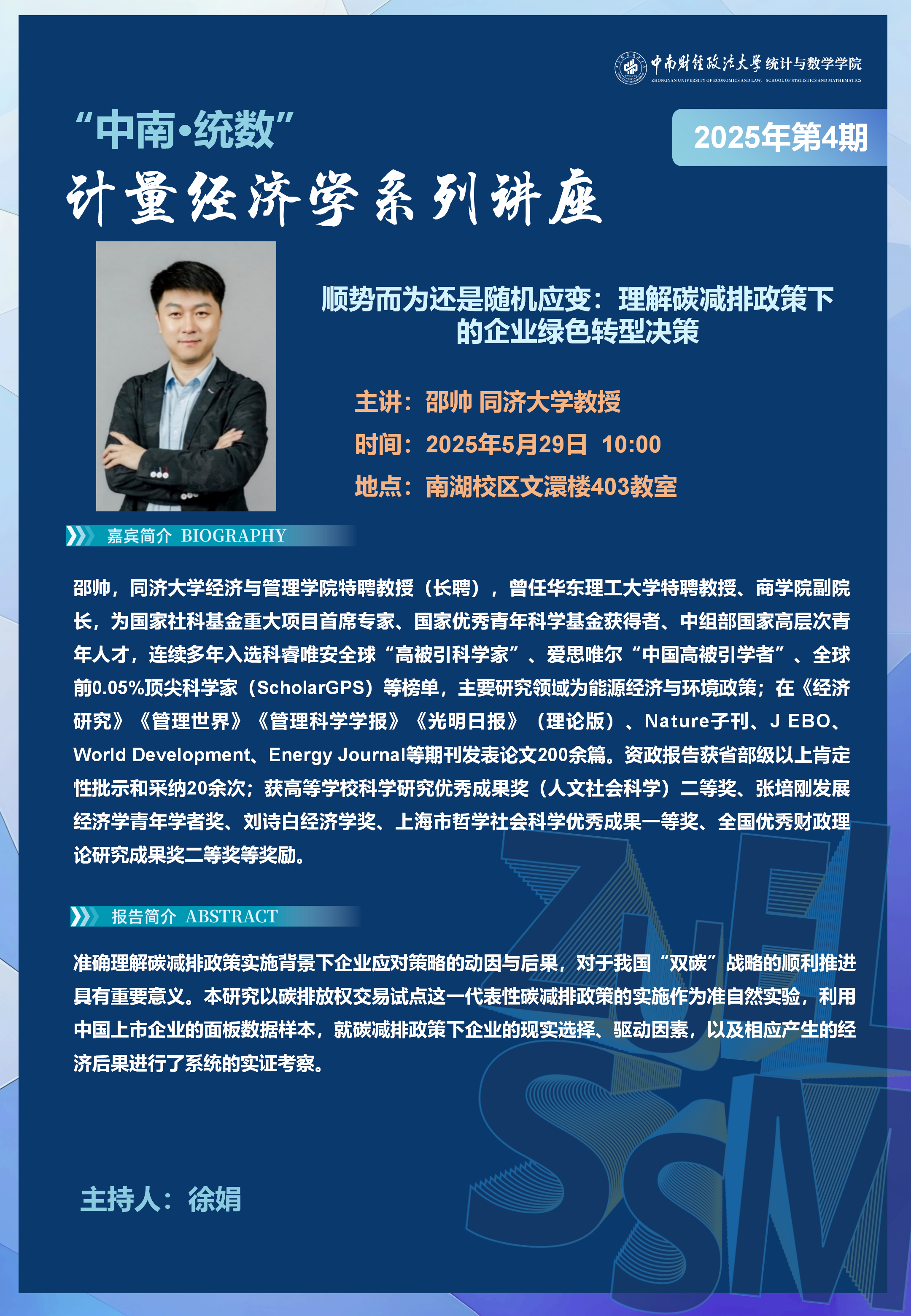 “中南·统数”计量经济学系列讲座(2025年第4期)