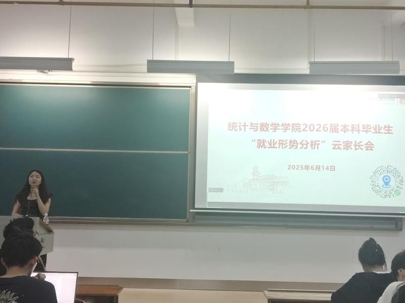 (通讯员:张婧雯)为切实做好2026届本科毕业生就业指导工作,强化学生日常管理,做好考风考纪教育,统计与数学学院于6月14日,在南附楼201教室组织召开2026届本科毕业生“就业形势分析”年级大会暨云家长会。本次会议由学院辅导员伊帕尔古丽・吐尔孙江主持,全体2022级本科生与会,会议聚焦毕业生就业形势分析与学生日常管理工作展开,通过系统性指导与多维度交流,为学生成长成才提供全面保障,搭建学院与学生、家长间的有效沟通平台。