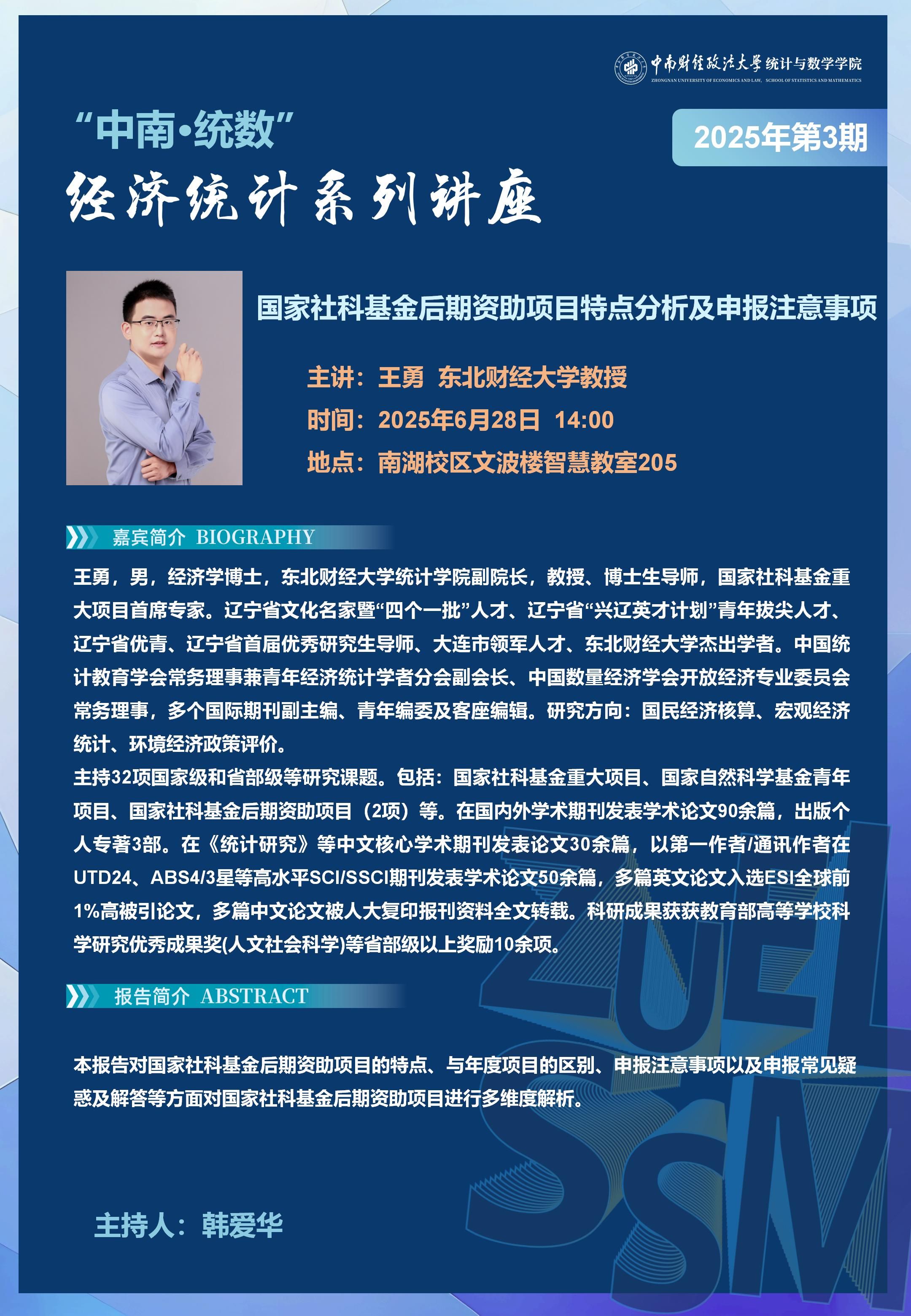 “中南·统数”经济统计系列讲座(2025年第3期)
