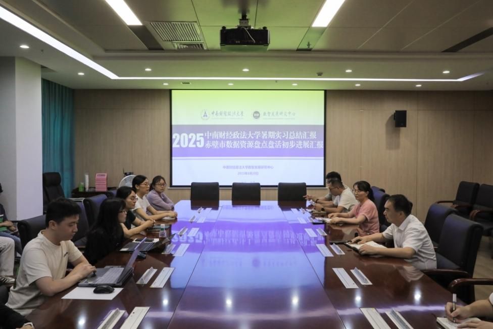 (通讯员李冯骁 傅耀茗)8月28日下午,我院暑期数智化数据要素流通产教融合创新实践实习总结汇报暨赤壁市数据资源盘点盘活初步工作汇报会于赤壁市政数局顺利召开。赤壁市政数局党组书记、局长余新华及相关负责人,赤壁市数字信息产业发展有限公司副总经理魏胜,数智发展研究中心主任胡淑兰教授,副主任邹娜副教授,实习指导老师李宇勐副教授、袁茹老师,以及全体实习生共同参加总结会。