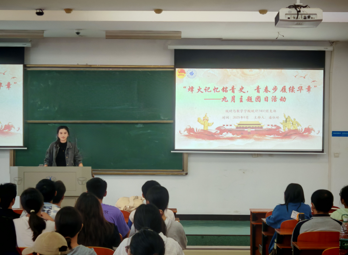 (通讯员:李万芸)为传承红色基因,厚植爱国情怀,9月21日,统计与数学学院统计2402团支部以“烽火记忆铭青史,青春步履续华章”为主题,开展九月主题团日活动,全体团员参与,由团支书潘钰婷主持。