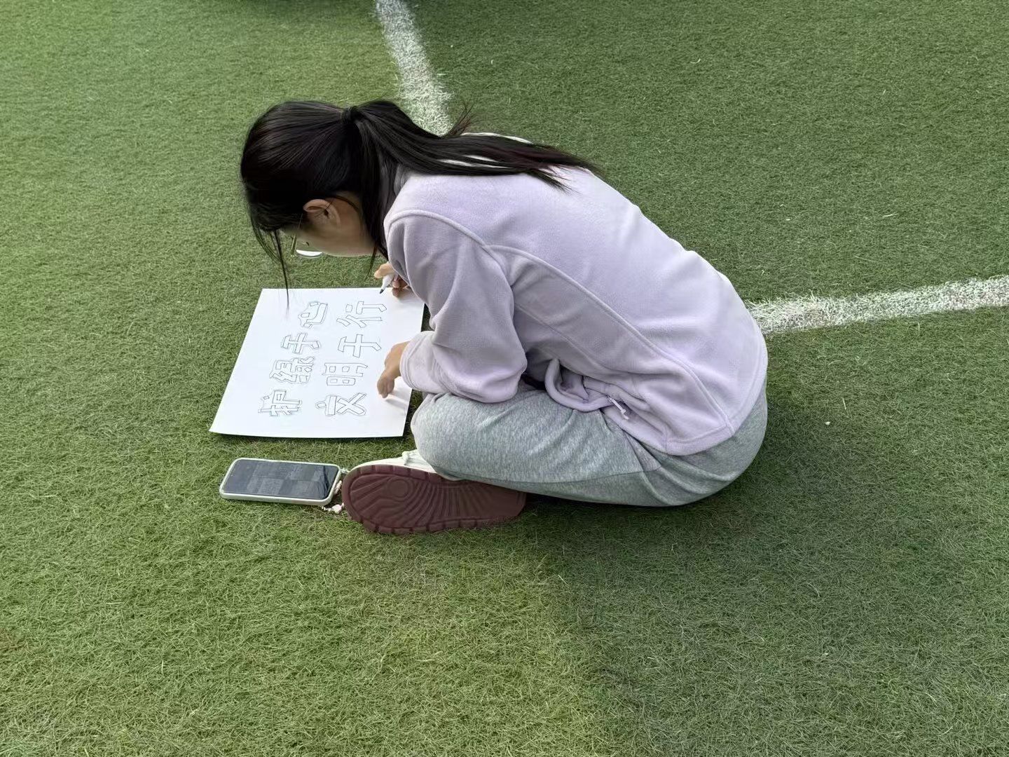 绘制完成后,负责人在南操场的合适位置将同学们精心制作的环保标语悬挂展示,时刻提醒过往师生关注环境保护,共同守护美丽校园。