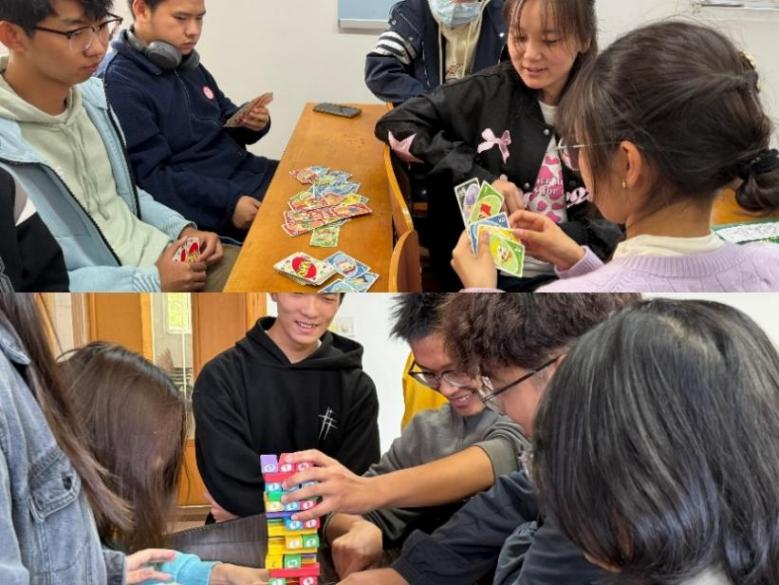 为调动团支部成员的积极性,四位团支委分别组织七人进行了“牌类游戏+知识问答”相结合的趣味环节。游戏过程中,大家纷纷积极参与,活动现场氛围活跃。