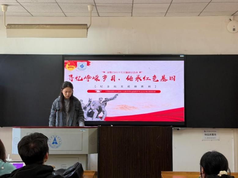 (通讯员:徐静轩)为学习贯彻习近平总书记关于伟大抗美援朝精神的一系列重要论述,金数2501团支部组织开展“寻忆峥嵘岁月,传承红色基因”十月主题团日活动。活动突破传统单向的学习模式,创新性融合理论学习、影视感染与趣味互动,通过“寓教于乐”的方式,引导团支部成员们深刻理解抗美援朝战争的重大意义与精神内核。