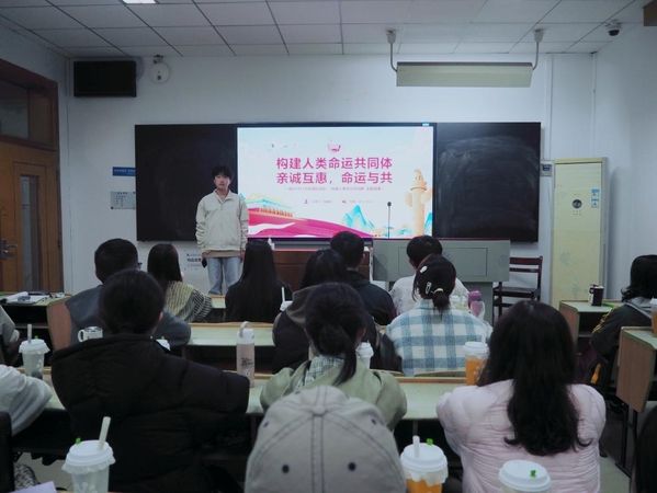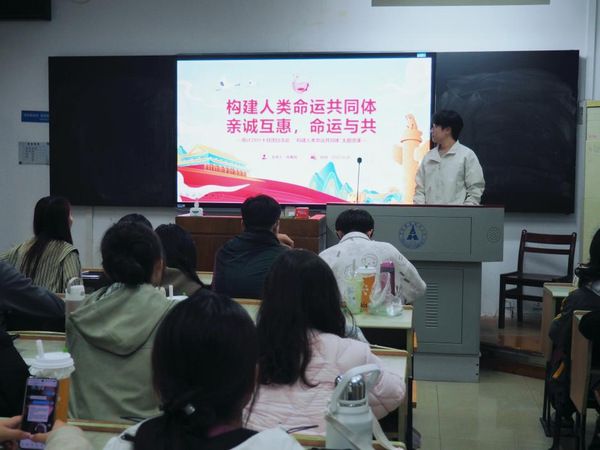 随后,团支书详细阐释习近平外交思想的丰富内涵,包括“十个坚持”的总体框架和核心要义,以及构建人类命运共同体的核心理念等,让同学们深刻认识到习近平外交思想为中国特色大国外交提供了根本遵循。同学们也坚定信念,今后将以实际行动践行外交思想,为推动构建人类命运共同体贡献青春力量。