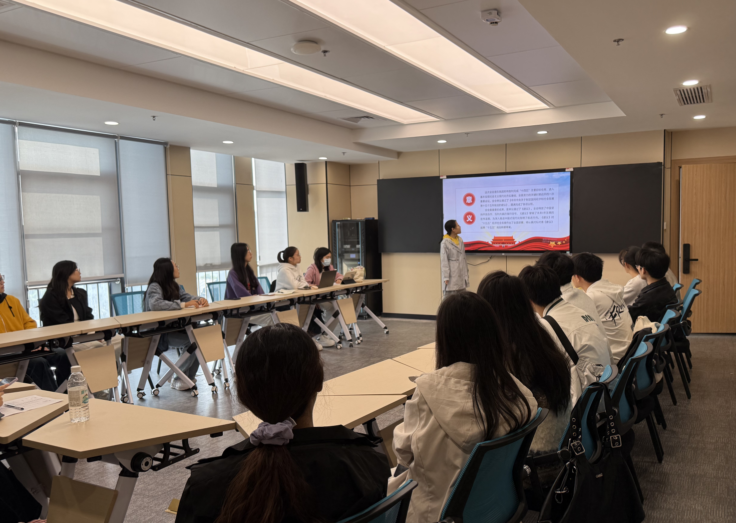 理论学习环节,温子仪带领大家学习了党的二十届四中全会精神,重点解读全会提出的五年发展蓝图及战略部署,以及作为研究生干部如何将把全会精神落实到日常科研工作和学习工作中。