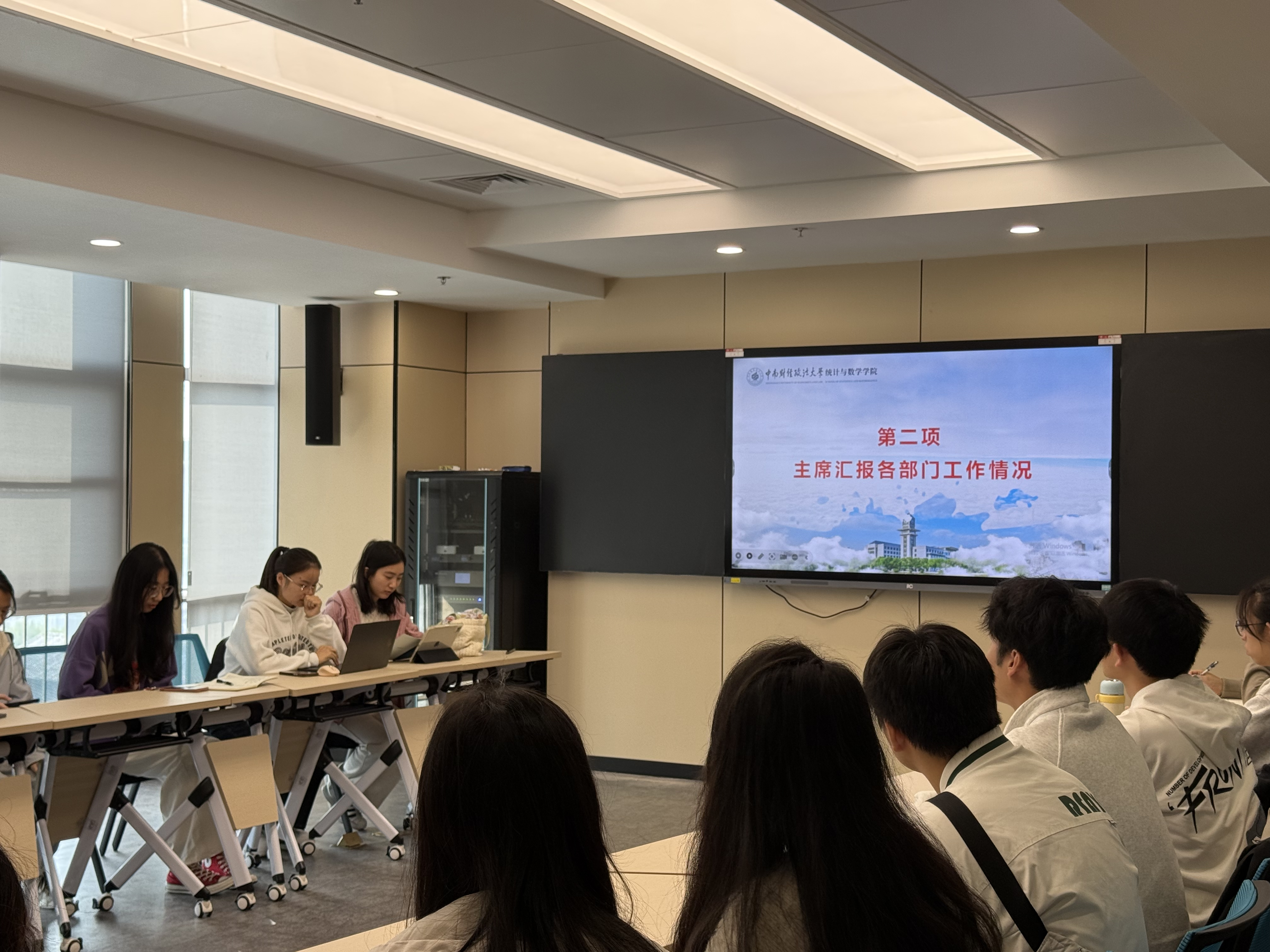 (通讯员 吴志伟 张芷怡)11月3日上午,统计与数学学院研究生会在双创楼510召开召开政治理论学习暨10月工作例会,本次会议由研会秘书部温子仪主持,研究生辅导员吴志伟及研究生会各部门成员共同参与。