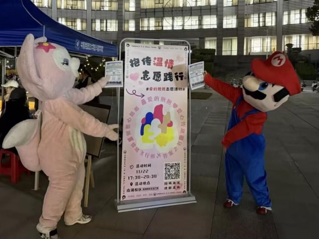 (通讯员 张思凡)2025年11月22日,米兰电竞·(中国区)统计与数学学院志愿者协会在首义、南湖双校区同步开展“爱的抱抱”志愿活动,以一系列温暖互动缓解大学生心理压力、增进同学间情感联结,为冬日校园注入了治愈人心的暖流。