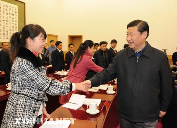 20081222日,中共中央政治局常委、中央书记处书记、国家副主席习近平主持召开大学生“村官”代表座谈会并作重要讲话。这是习近平与大学生“村官”代表亲切握手。