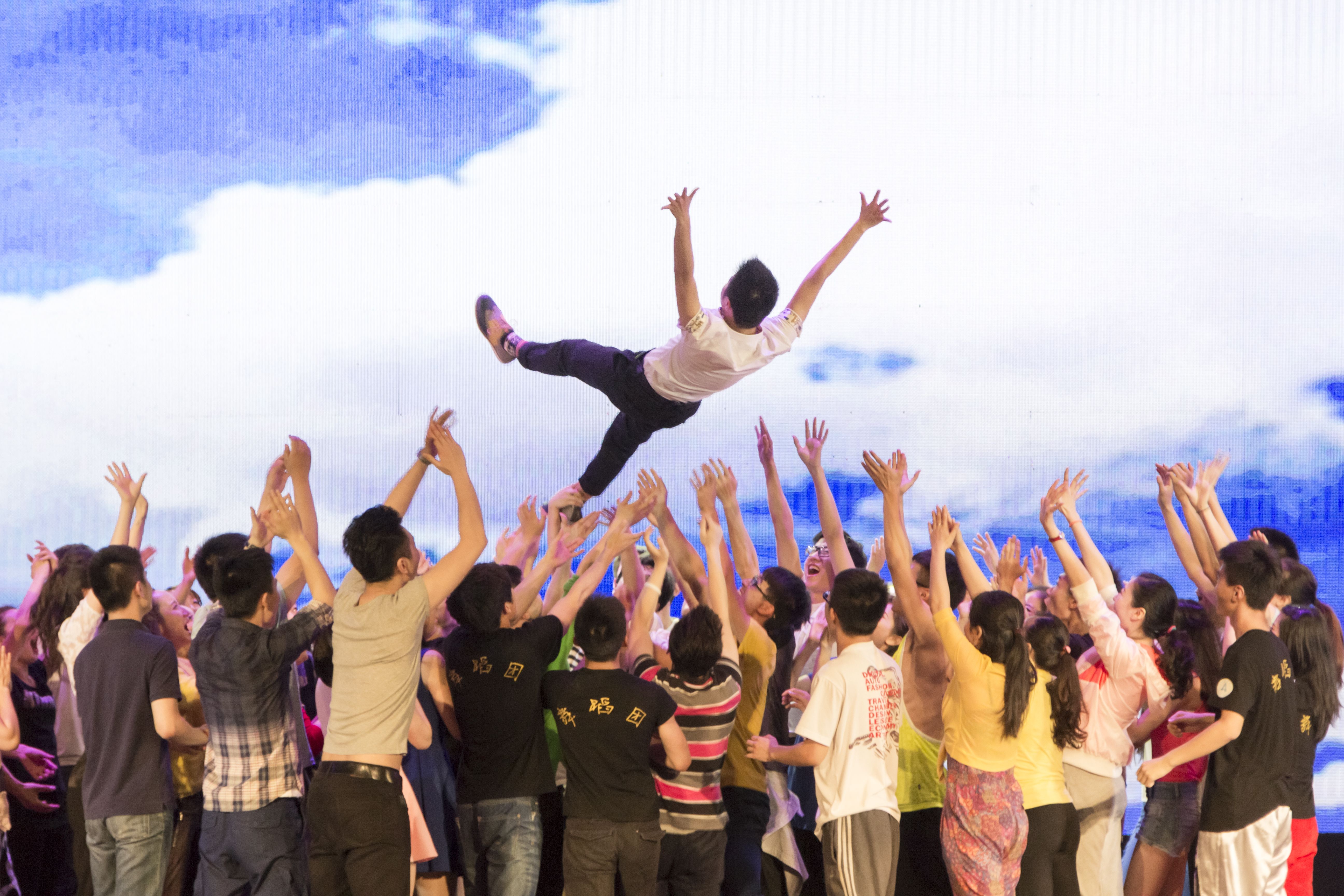 十年是一个轮回,十年是一个团聚。晚会临近尾声,所有到场04级团员、06级团员、08级团员、10级团员、11级团员、12级团员全部冲上舞台,没有彩排、没有预演,每一位团员却舞出了最默契的舞蹈。“我要飞得更高,飞得更高,狂风一样舞蹈……”当所有人含泪相拥,当兰老师向团员们鞠躬致谢,当团员们将兰老师高高抛起,最后的群舞《飞得更高》舞出了此刻所有人的心中最深的想法。