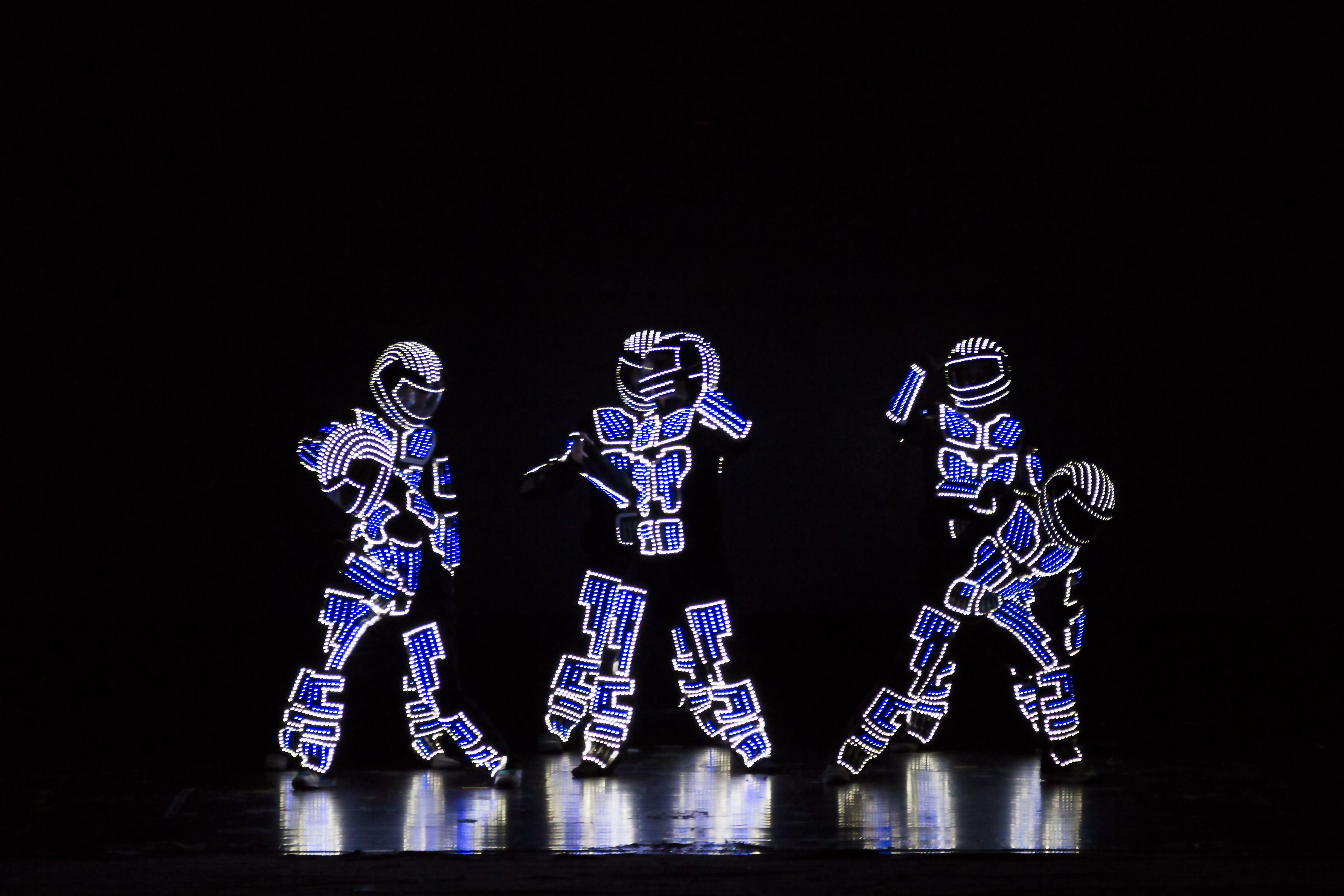 就在不久前,校大学生舞蹈团携光电舞《飞向太空》登上央视舞台参加“五月的鲜花”全国大学生主题文艺活动的录制,而今晚他们再次为观众献上这一精彩表演。科技与舞蹈的碰撞、舞蹈与轮滑的结合,变幻莫测的LED灯炫酷十足,引得观众掌声四起、尖叫连连。