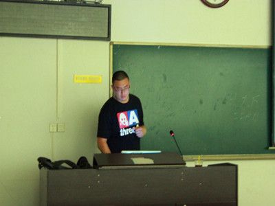 王总监凭借其风趣幽默的语言,迅速地吸引了同学们的注意力,并向在场同学们展示了一系列的动画,包括他自己独立制作的人体解剖讲解视频。稍后,他又在现场亲自创作了一幅游戏原画,以鼠标为画笔,将电脑显示屏作为画布,一笔一笔地勾勒出一幅人兽大战的场景,现场同学们目不转睛,生怕错过了任何一个细节,在将近半小时的创作过程中,王总监边创作边指导在场同学,为同学们解决了很多技术方面的问题。