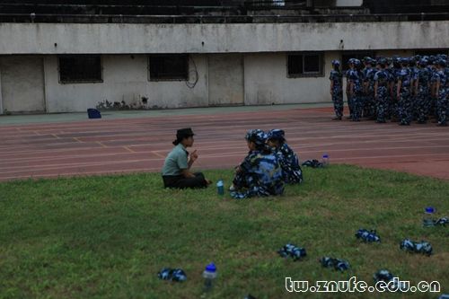 他们时刻关注军训的进程,关心学生动态,期间同身体不适的同学聊天缓解期心情,了解关心她们的情况,和她们一起度过军训时光。