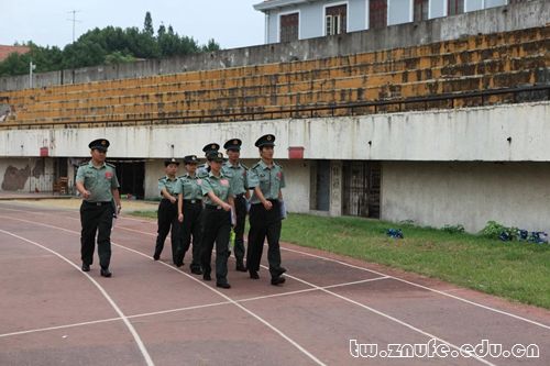 军训助理整齐地按队形离开场地,时刻严格要求自己为同学们做好榜样。