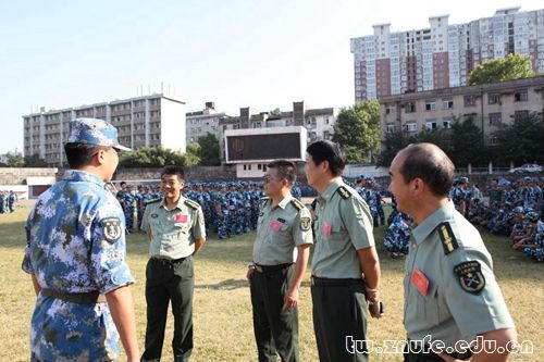 校领导以及军队师长时刻关注军训动态,亲自到训练场地视察,并向军训负责人了解情况。领导人与学生近距离的交流沟通,亲近同学生活,以获得同学们训练的近况。
