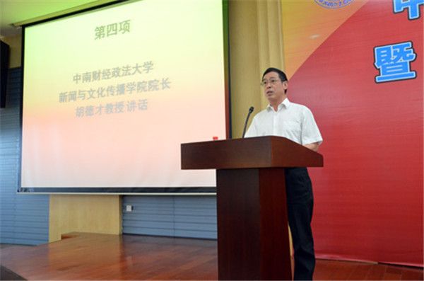 校长杨灿明教授在开幕式上发表重要讲话。杨灿明校长高度肯定了新闻与文化传播学院建院以来在人才培养、教学科研、学科建设、服务社会等方面取得的突出成就。他希望学院加强与兄弟院校和媒体的联系,取长补短;同时,广泛开展合作交流,建立知名媒体人才培养基地,大胆创新人才培养模式。杨灿明校长希望学院立足大学功能与时代需求,发挥新闻、中文与艺术学科优势,为学校校园文化建设、人文精神的延续与传播贡献力量,再续辉煌。