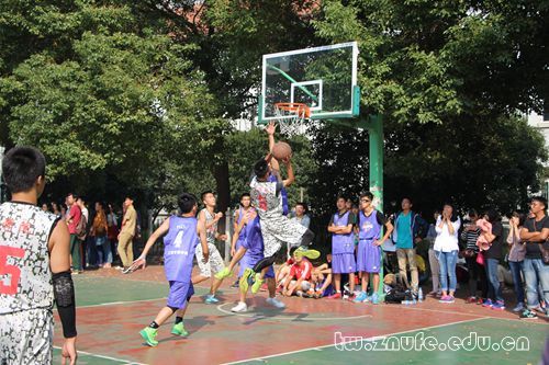 而在下半场的比赛中,双方对决更加激烈。在大比分落后的情况下,下半场一开始工商学院队员就奋起直追,但法学院队员也不甘逊色。在迅速的回防中,法学院队员多次将对方的球截获。凭着坚固的防守与凌厉的进攻,法学院队员一鼓作气乘胜追击。最后凭借九号、十五号等队员的精准射篮,法学院以43:16杀进决赛,再次彰显了法学院的王者风范。
