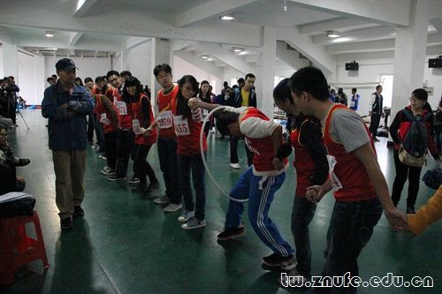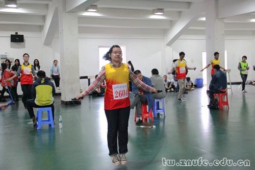 今年新增的跳绳项目以30名队员分别在30秒钟之内跳绳的个数累加作为最终成绩,法学院以总数2838次的成绩荣列第三。在同为新项目的“穿越”中,法学院以26秒93的优异成绩超越其他学院,夺取第二名的好成绩。在比赛中,全队人员默契配合,动作协调迅速,灵活地在呼啦圈中穿梭。比赛结束后,记者采访了法1303班的伍溥同学,他表示团队每个人的努力和整个团队的默契配合是所有集体项目取胜的关键。