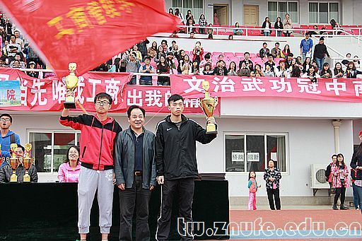 此外,工商管理学院党委辛忠孝书记、工商管理学院党委吕宗瑛副书记、分团委书记孙开帆老师、分团委副书记赵和楠老师及14级年级主任刘筱佳老师也在百忙之中观看闭幕仪式。裁判长官立勇教授宣布比赛成绩后进行了颁奖仪式,工商管理学院以男子团体总分第一名、女子团体总分第一名、团体总分第一名以及体育道德文明风尚奖四项优异成绩实现了四连冠的辉煌战绩,副校长刘茂林教授为工商管理学院颁奖并合影留念。