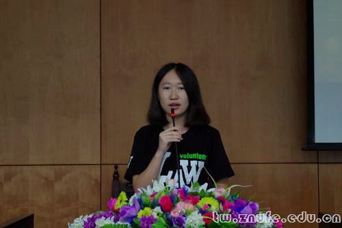 第十一届法学院志愿者协会会长孔瑜皎与大家分享自己作为一名志愿者的心得体会。她表示,志愿者应该尽己所能,不计报酬,全心全意为广大人民群众服务。回想作为志愿者的经历,她感触良多,认为自己非常荣幸,能为社区的法治建设贡献自己的力量。