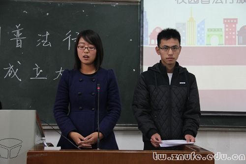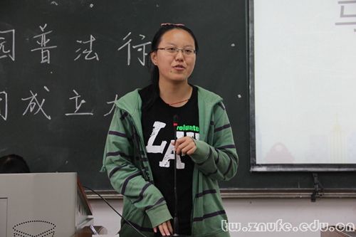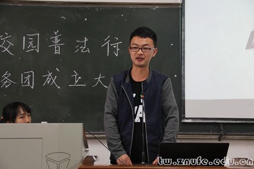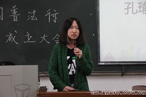 志愿者协会会长孔瑜皎首先回顾了今年“校园普法行”服务团对新人才的招收情况,并指出,“大家不仅是经历了严格选拔脱颖而出的人才,更是已经承担一定社会责任的优秀大学生,我们如今的所作所为都应对得起自己的付出。”她结合自己曾经做志愿者工作的经历,动情地表示:“我们会经历困难、面临困境,但是只要是有意义的事,我们就要坚持。”星火燎原部长马丽也表示,今年新招的同仁虽少,但是大家对志愿活动都怀有真诚的希冀。只有努力完善专业知识,并坚守一份纯粹的责任心,才能让服务团走得更长远。