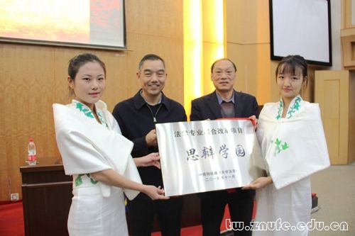 雷照荣和陈勤舫为“思辩学园”揭幕。随后,姚莉为“思辩学园”总教练郭倍倍颁发聘书。郭倍倍期待在大家的共同努力下将“思辩学园”打造成一个品牌,共同开拓法学教育新局面。
