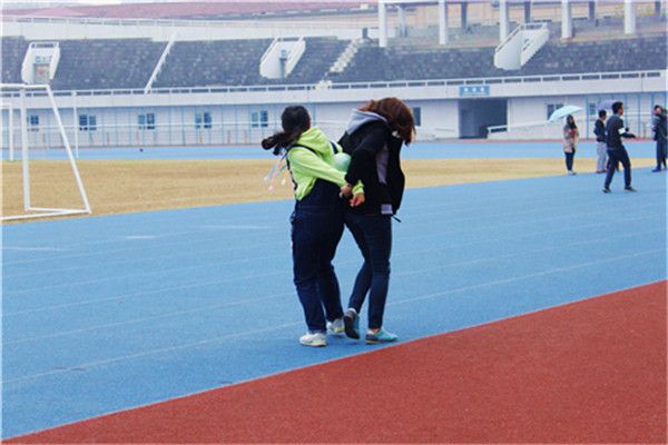 此次活动分为智慧接力、贴人游戏、斗鸡大会、众里寻他千百度四个环节。在工作人员简单介绍比赛规则之后,比赛正式拉开帷幕。在智慧接力环节,选手们不惧风雨,奋勇直前。贴人游戏中,有的同学配合默契迅速抵达终点。斗鸡大会把此次活动推向高潮,斗鸡大会同时要求每组男女三人参赛,其中女生克服害羞心理,勇敢上阵。此环节采取十组选手同时开战的方式。随着裁判口令声下,场面顿时活跃起来,大家斗志昂扬,时而迎面直击,时而侧面偷袭。场上热烈的气氛传递到场外,引发观众连连叫好以及热烈的掌声。随着观众包围圈的逐步缩小,场上选手也越来越少。最后来自新闻1401班的陈宏江击败所有选手,取得此环节的胜利。众里寻他千百度环节更是把大家的情绪调动到极致。此环节把不同年级的队员进行交叉组合,共划分为五组参赛队伍,各组成员根据自己抽签拿到的目标地点,一同出发寻找,合影为证,并在30分钟内回到新体育场。各组队员拿到目标任务后,即刻出发。选手们相互配合,相互激励,紧凑的步伐跳跃在微湿的路上,任务也在队友们的共同努力下得以完成。